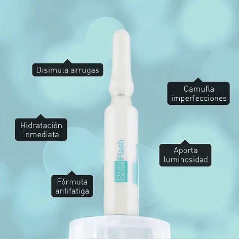 La ampolla Flash es una fórmula creada para obtener un efecto antifatiga inmediato, ofreciendo una piel más hidratada y luminosa.